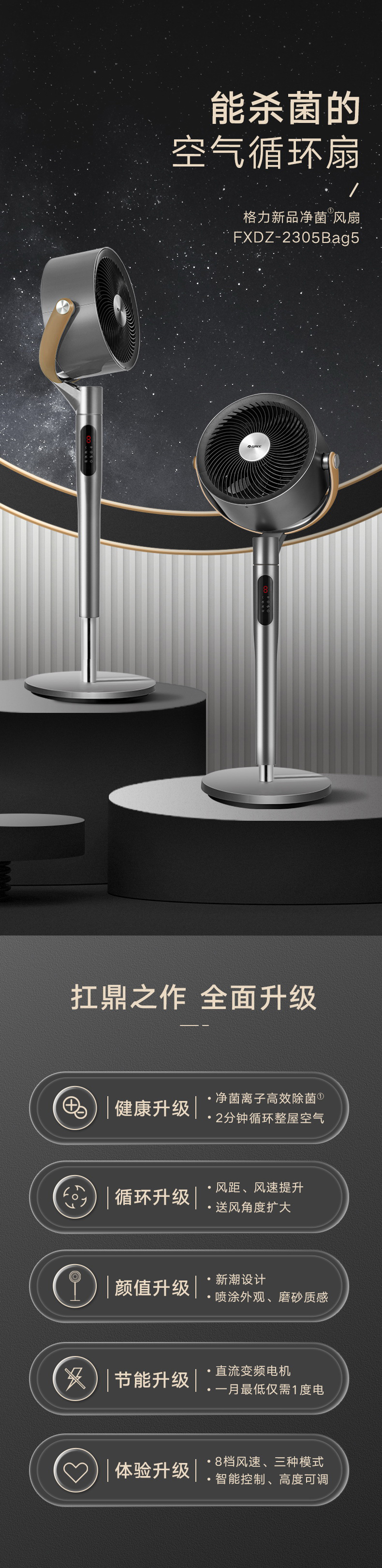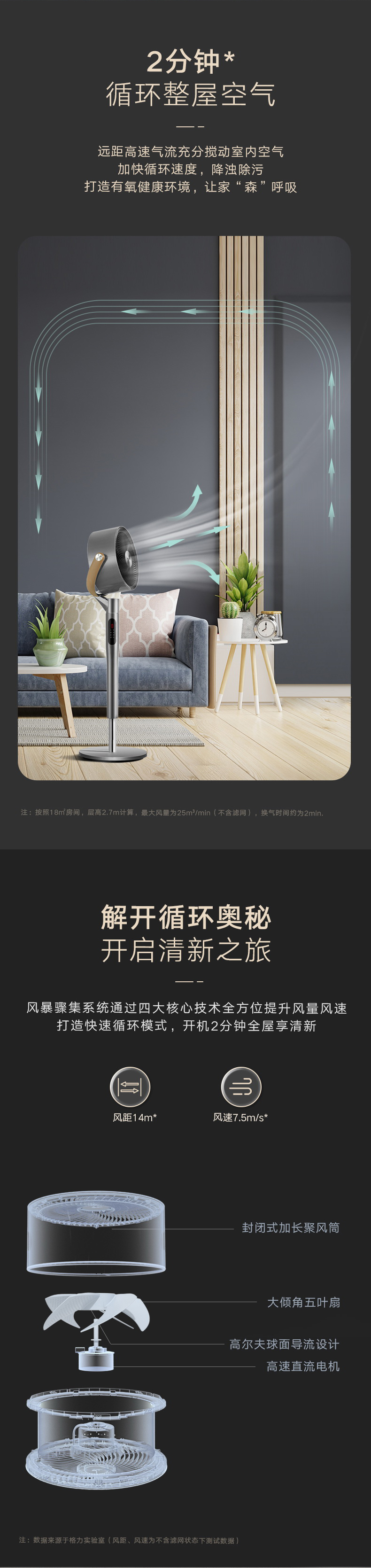 净菌循环系统,唤醒全屋活力;空调新伴侣,久吹不沉闷;2分钟循环整屋空气;直流变频电机,一月仅需一度电
